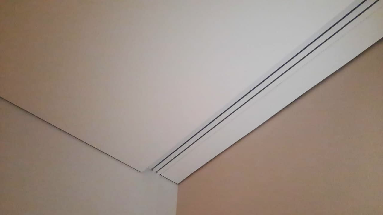 Если у вас большое помещение шов менее заметен на матовом полотне его почти не видно , на глянцевом полотне он более заметен маленькая тонкая полоска как шов на обоях.